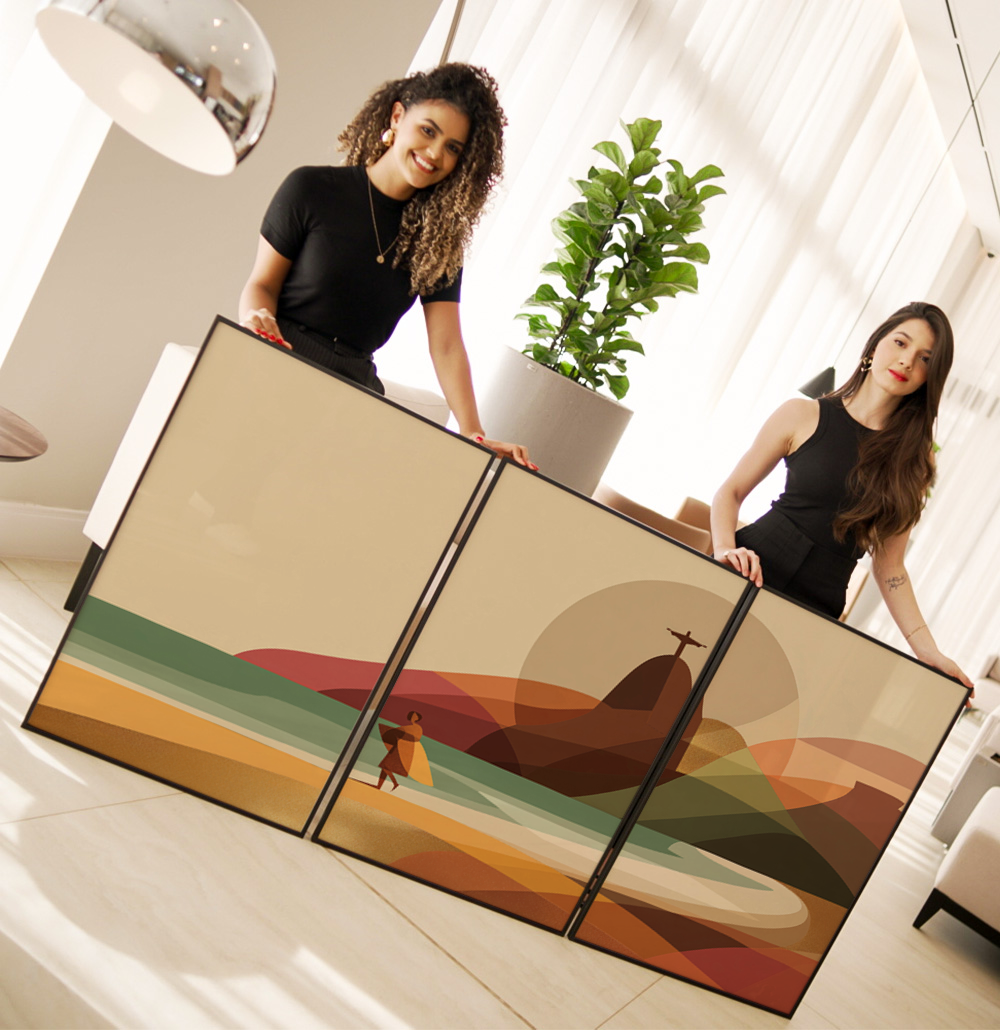 um estilo de moldura minimalista, que transmite a sensação de leveza devido à sua proporção frontal, seu design tem como objetivo valorizar a obra de arte por ser menos aparente.