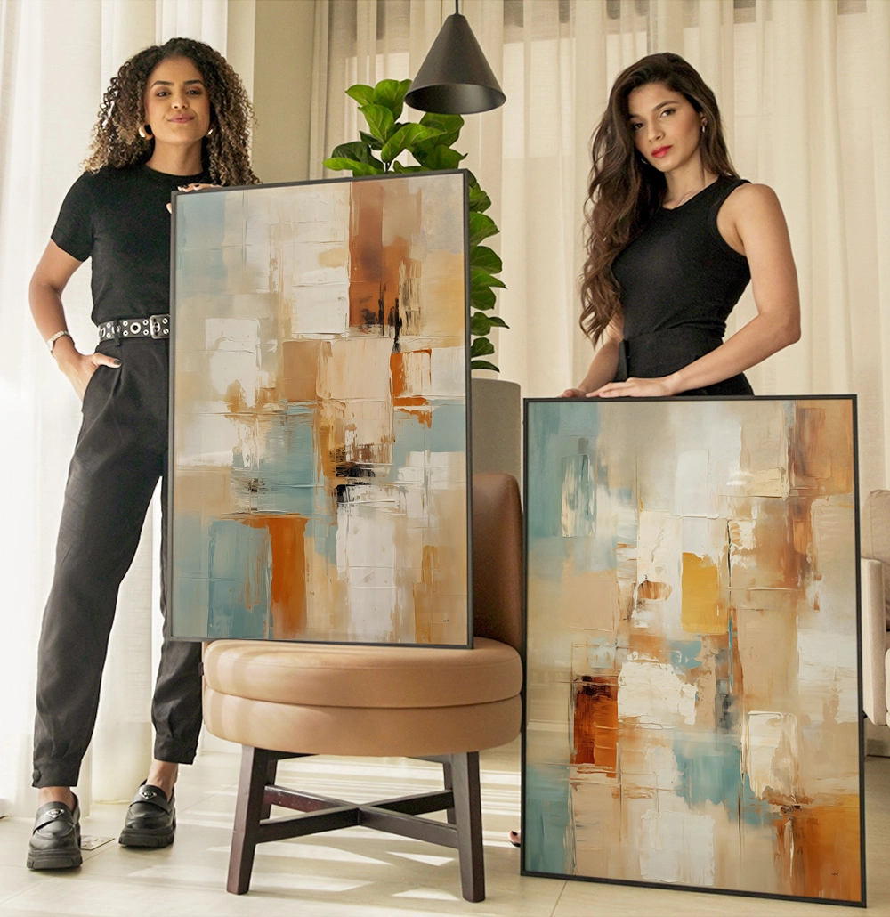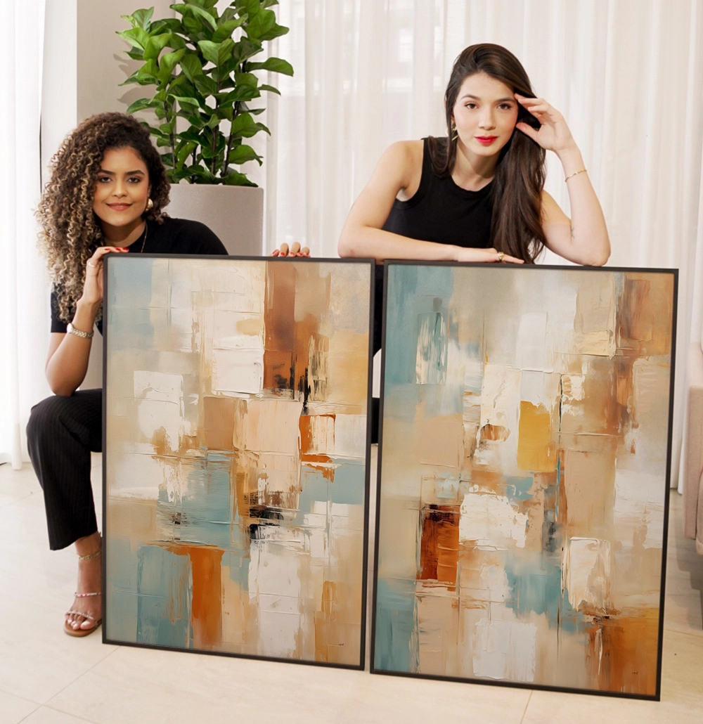 Kit Quadro Decorativo Pintura Abstrata Expressionista Azul E Terra 20250721173918