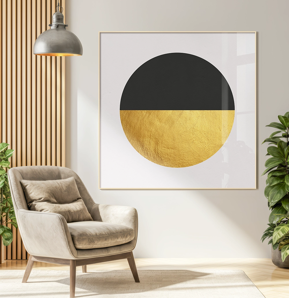 Quadro Decorativo Circulo Minimalista Preto E Dourado Com Textura 4465
