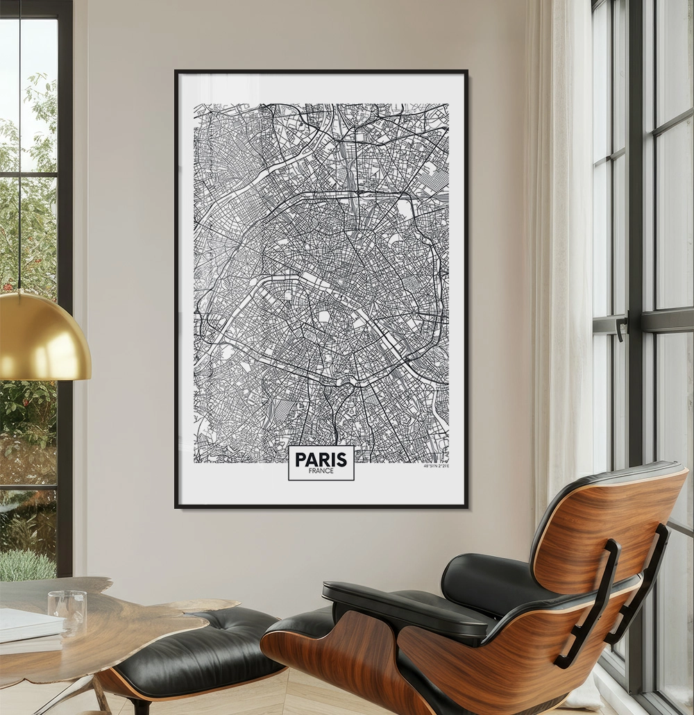 Quadro Decorativo Mapa Minimalista Centro De Paris Franca 4907